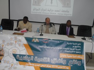 نظم نادي التنمية البشربة بالجامعة الإفريقية بأدرار ندوة علمية بعنوان « واقع و آفاق التنمية البشرية » و ذلك بالتنسيق مع المديرية الفرعية للنشاطات الثقافية و الرياضية و قسم علم الاجتماع و جمعية الإخاء و السعادة ، و أطر الندوة كل من مدير مركز العوماري للتدريب و الاستشارات السيد العوماري توهامي إلى جانب مدير مركز الرائد السيد وجي أحمد و مدير مركز الفائز السيد الداوي ابراهيم حيث تناولوا عدة محاور على غرار مفهوم و أهداف التنمية البشرية، و آفاق التنمية البشرية.